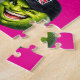 Un peu d'audace avec ce casse-tête vibrant vert citron mettant en vedette notre personnage vert célèbre dans sa casquette classique de l'Union Jack. Ce design se détache sur un fond rose chaud audacieux et saisissant qui fait ressortir les lignes. C'est un défi amusant et coloré qui apporte une touche d'humour britannique à votre table - un cadeau brillant pour les amateurs de puzzles qui apprécient un peu de
