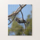 Oiseau, Phoebe Noir, Sayornis nigricans, "godets". L'oiseau noir au ventre blanc est assis sur une branche d'arbre nu. Ciel bleu clair et arbres diffus en arrière - plan.