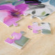 Construisez votre propre oeuvre d'art avec ce puzzle spaniel Tricolor Cavalier King charles. arrière - plan floral d'anémones aux couleurs rose et violet. Un grand cadeau pour les amoureux des animaux de compagnie. Disponible en petites et grandes tailles.