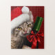 Puzzle Chat De Noël Avec Bouteille De Vin