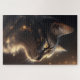 Cette oeuvre d'art époustouflante est une combinaison de photographie de fond et d'art numérique, créant une oeuvre d'art unique et attrayante. L'objet est illuminé en or contre un arrière - plan noir, créant un effet audacieux et dramatique.