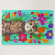 Puzzle Chat gris mignon avec Fleurs colorées
