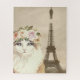Vintage teinte sépia photo arrière - plan de la Tour Eiffel avec couverture de belle aquarelle chatte fantaisie à couronne florale