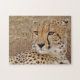 Close-up photo of a female cheetah lying in a dirt hole. This cheetah is about 18 months old, et nous saw her lying in a hole in the late afternoon. While we watched, she groomed herself, then chased her tail just like a house cat does, and then settled down for a nap.