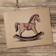 Un puzzle avec un dégradé et texturé arrière - plan beige et une illustration d'un cheval rocking artisanal dans les tons marron : un cadeau sympathique pour un enfant ou un amoureux des jouets en bois!