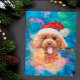 Poodle Breed Dog Christmas est doté d'une aquarelle d'un Poodle avec un Casquette Père Noël rouge, un collier de Noël rouge et une aquarelle galaxie.