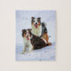 Mâle australien de berger et chiens femelles se reposant sur la langue de neige hors de la bouche ensuite ayant joué