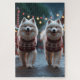 Cette conception festive capture l'esprit joyeux de la saison des fêtes, mettant en vedette un chien adorable. Niché dans un pays des merveilles hivernal, avec un arbre de Noël décoré et des cadeaux magnifiquement emballés. Les flocons de neige tombent doucement, ajoutant une touche magique à la scène, tandis que les couleurs vives des décorations de Noël créent une atmosphère chaleureuse et joyeuse.