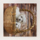 Deux adorables petits chiots blancs dans un panier, sur ce merveilleux puzzle.
