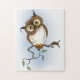 Petit hibou mignon avec sa tête inclinée en bavardant.