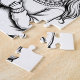 A cozy scene unfolds as two characters, a boy and a girl, stand side by side, each holding a steaming mug. The camera slowly zooms in, capturing their warm expressions and the intricate details of their festive sweaters. Surrounding them, holiday decorations hang from above, creating a cheerful atmosphere. Soft, diffused lighting enhances the mood, casting gentle shadows that dance across the puzzle backdrop. The scene flows with a heartwarming rhythm, inviting viewers into a moment of shared joy.