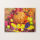 Jigsaw puzzle avec mon image d'une moisson de Thanksgiving de citrouilles, pommes, oranges, maïs sur le berceau et feuilles et glands de couleur automne.