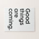 De bonnes choses arrivent. Citation de positivité stimulante dans la typographie minimaliste en noir et blanc.