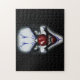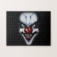 Un clown maléfique très effrayant avec des décorations bleues sur le visage et des dents acérées.