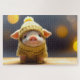 Puzzle cochon mignon en costume tricoté en hiver