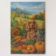 Célébrez la beauté de la chute avec cette peinture vibrante d'un chien assis à côté d'une généreuse moisson de Thanksgiving. Les riches couleurs d'automne des citrouilles, des tournesols et des paysages rustiques des fermes créent une atmosphère chaleureuse et accueillante, parfaite pour toute décoration saisonnière amoureux des chiens.