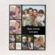 Un puzzle photo-collage personnalisé avec 9 photos de famille, animaux domestiques, souvenirs, événements, votre photographie, etc. et une ou deux lignes de texte en simple typographie blanche contre un arrière - plan noir. Les couleurs de l'arrière - plan et du texte peuvent être modifiées en modifiant l'outil de conception.