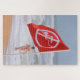 Mettez votre casse-tête à l'épreuve avec cette photo du drapeau rouge avertissant de conditions dangereuses et les vagues frappant Cocoa Beach, Floride. Puzzle 20 x 30 pouces avec 1014 pièces.