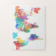 Une configuration de texte typographique du monde dans un style urbain d'aquarelle. Chaque pays est représenté par son nom, qui est formé à l'ajustement dans le secteur géographiquement correct. Pratiquement tous les pays sont représentés prévoient pour certaines des îles très plus petites dans le Pacifique et les Caraïbe.