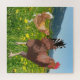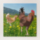 C'est la troisième des trois versions d'un joli puzzle coloré qui apportera un souffle de la campagne dans votre maison. Il montre un coq jaunâtre s'enfuyant d'une poule qui a tourné les tables sur lui, las de ses avances, dans un pré fleuri du printemps que j'ai repéré en France et dessiné.