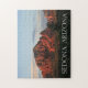 Puzzle de 11" x 14" avec une image de plusieurs formations rocheuses rouges à Sedona, Arizona illuminé par un coucher de soleil extraordinaire rouge et orange. Voir la collection Arizona Puzzle dans la section HOME.