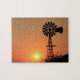 Un Sunset orange doré du Kansas qui est lumineux et coloré avec une silhouette de moulin à vent au nord de Hutchinson Kansas USA. C'est sur un PUZZLE.