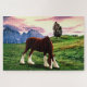 Un étalon bel de Clydesdale frôle pendant que le soleil place.