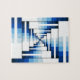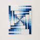 Design graphique textuel comportant sept couches géométriques successives dans les tons bleus.