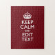 Votre personnalisation Keep Calm dans un décor de couleur rouge bordeaux et raffiné personnalisé. Un style personnalisé Keep Calm en disant sur un cadeau de nature. Essayez humour ou fantaisie sur vos mots créatifs sur deux lignes de texte modifiables. N'oubliez pas d'utiliser les lettres CAPITAL pour obtenir les meilleurs résultats. Les modèles sont disponibles dans une large sélection d'options de couleurs populaires. Utilisez le lien "Demandez à ce concepteur" pour nous contacter avec vos demandes de design spécial ou pour obtenir de l'aide sur vos besoins de personnalisation.