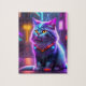 Magnifique Chat En Cyber-Espace Coloré Avec Lumières Néon Et Couleurs Arc-En-Ciel Dans Un Monde Imaginaire Style Sci-fi 3D Peinture Numérique Cyberpunk Chat. Poster Coloré De Chat Pour Salle D'Enfants, Puzzle De Chat,