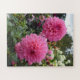 Deux beaux dahlias roses qui poussent dans un jardin public. Qui est le casse-tête en puzzle dans votre monde ? ou qui aime faire pousser des fleurs ?