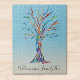 Puzzle d'arbre généalogique personnalisé Ce puzzle élégant est décoré d'un design d'arbre généalogique coloré sur un arrière - plan à l'ombre bleue. Customisez-le avec votre nom de famille. L'arbre était à l'origine en mosaïque avec de minuscules morceaux de verre coloré. Mosaïque originale © Michele Davies.