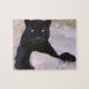 Puzzle de jeu montré avec une photo d'une belle grande chatte noire. Customisez cet objet ou achetez tel quel. Image stock