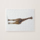 Un puzzle d'amusement montrant une longue girafe étranglée.