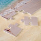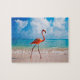 Ce puzzle de jeu est montré avec une copie de photo d'oiseau de flamant sur la plage.