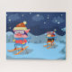 Une jolie scène d'hiver d'un cochon et d'un renard faisant du ski de nuit.