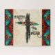 Profitez de ce Puzzle unique "One of a Kind" de la Croix du Sud-Ouest! Il comporte une grande croix sud-ouest en Turquoise, Orange et Noir sur un Arrière - plan de grès Tan et les mots chrétiens inspirants...."La foi au-dessus de la peur" ! Design D'Art Original Par L'Artiste Kerry Miller.