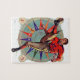 Artiste : E. M. Jackson | Un joueur de football puning ball, cercle de pennants derrière