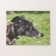 Casse-tête avec une photographie d'un beau lévrier noir avec une flamme et un bavoir blancs. Cette photographie a été prise une journée "portes ouvertes" au sanctuaire roux de lévrier dans les Cornouailles. Trouvez plus de cartes et de cadeaux de lévrier sur mon magasin de Zazzle chez BlueDogAtDingDong. Merci pour le visionnement.