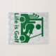 Spielen Sie Puzzlen mit Ballgrübchenhintergrund, es hat ein Bild eines Golfspielers im Wagen im Grün, Sie kann das Puzzlespiel zu allem ändern Golf, das Sie mögen. dit