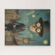 Ce puzzle, dans le style d'illustration numérique, dispose d'un détective avec une robe formelle et un casquette de cylindre. C'est un grand casse-tête pour ceux qui aiment les casse-tête non classiques qui ont des illustrations de bâtiments ou de paysages.