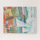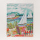 Deux voiliers et Cottage II de Karen Fields. Il comprend deux voiliers flottant dans l'eau entourés de fleurs colorées et de chalets.