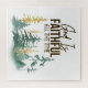 Citation inspirante puzzle représente un design d'aquarelle nature simple avec une forêt de pins verts et d'or. Il comporte une citation chrétienne encourageante, "Dieu est fidèle tout le temps."