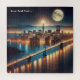 Puzzle représentant une peinture d'une scène d'imaginaire inspirée de San Francisco, avec une pleine lune la nuit.