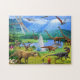 Auf Beautiful image showing an incredible prehistoric landscape with dinosaurs. Fotograic image from the life of dinosaurs is beeinve in its detail and richness of events. From this picture, you can study the life of dinosaurs. Here we see several scenes depicting the events of the Cretaceous period of the Paleozoic era. The dinosaurs painting on this jigsaw puzzle with an incredibly realistic image from the life of dinosaurs. This journey, humor and incredible discoveries await you upon closer inspection. Dinosaur puzzles are very popular among children, especially boys. This picture differs from all others in its fotograic quality. This is one of the best dinosaur images to date. For more great artwork by cutting-edge artist Radiy Bohem, visit his store zazzle.com/store/bohemfantasy