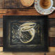 Dragon couleur crème sur pierre gravée celtique et tribale.