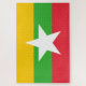 Ce dessin est orné du drapeau national du Myanmar (Birmanie) (officiellement connu sous le nom de République de l'Union du Myanmar), un pays d'Asie du Sud-Est. Le Myanmar est bordé par le Bangladesh et l'Inde au nord-ouest, la Chine au nord-est, le Laos et la Thaïlande à l'est et au sud-est, et la mer d'Andaman et la baie du Bengale au sud et au sud-ouest. La capitale du Myanmar est Naypyidaw, et la plus grande ville du pays est Yangon (Rangoon). Les autres grandes villes du Myanmar sont Mandalay, Bago, Hpa-An, Taunggyi, Monywa, Myitkyina, Mawlamyine et Magway.
