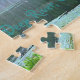 Cette magnifique scène d'un pont couvert qui enjambe une section d'étang est située à Deep River, Connecticut. Puzzle inclut également une inscription subtile qui se fond dans " Deep River, CT