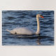 Un cygne blanc nage dans un lac d'eau bleu vif.