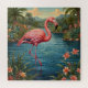 Un paradis vintage avec ce flamant rose de style rétro, élégamment niché dans un lagon tropical paisible.